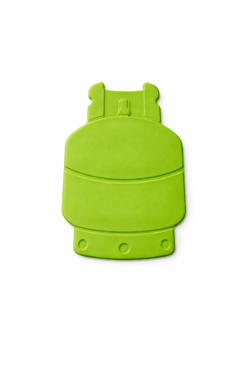 Magnético promocional con forma de galón de gas, fabricado en plástico resistente con imán posterior. Producto ideal para campañas masivas, regalos promocionales y acciones publicitarias de empresas de gas y servicios, con uso prolongado y alta exposición de marca.